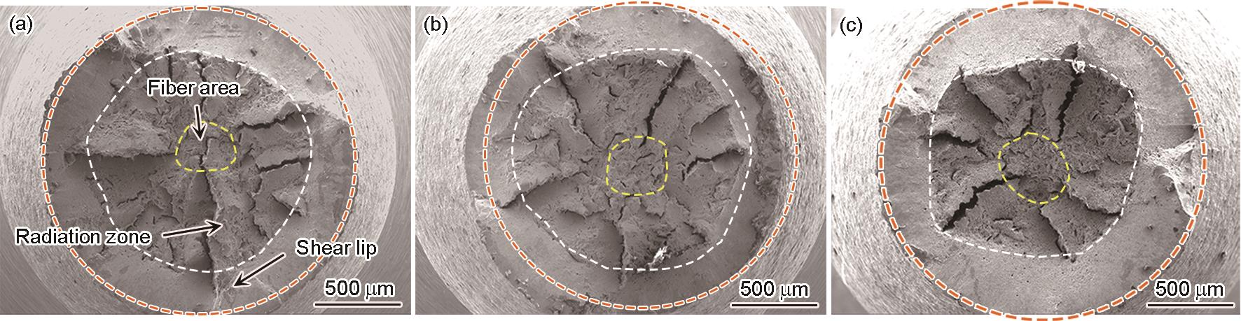 | Fig.9 Macroscopic morphology of tensile fracture (a) 250#; (b) 280#; (c) 310# |