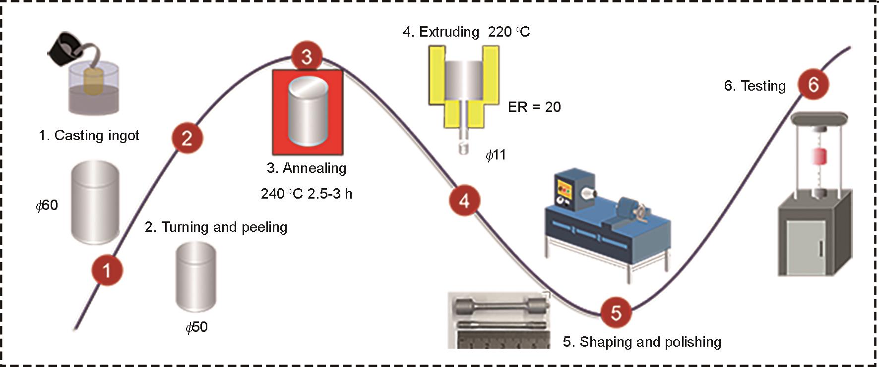 | Fig.1 Experimental process flow for preparation and property testing of Zn -0.45Mn alloy |
