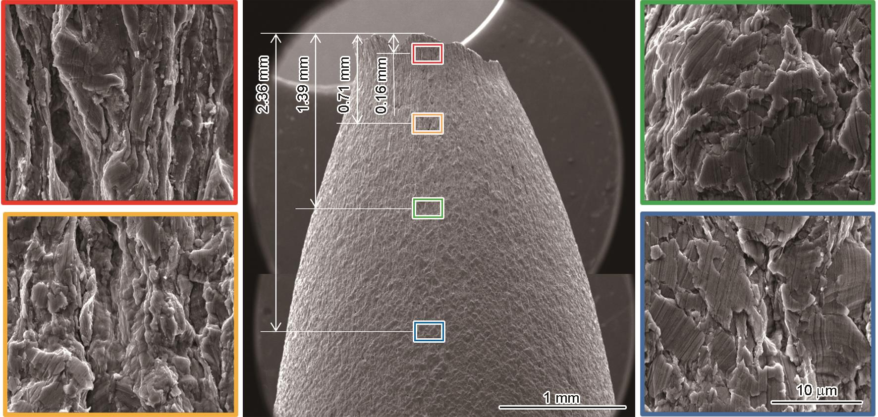 | 图12 Zn-0.45Mn合金在温度为37 ℃、应力为70 MPa条件下蠕变断裂后的纵截面 |