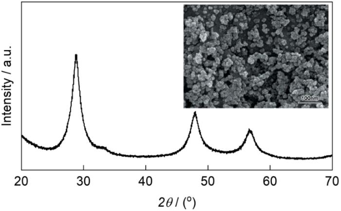 用D/max-3C X射线衍射仪(XRD, Rigaku)测试样品的XRD谱,使用Cu Kα (0.154178 nm)辐射;用扫描电子显微镜(SEM, Hitachi S-570)和附带的X射线光电子能谱(EDX)表征陶瓷的微观结构和成分;用Nicolet Nexus FTIRS光谱仪测试样品的红外透过性能,用光致荧光谱仪(Hitachi F-4600)分析发光特性;用Archimedes法测量陶瓷密度。