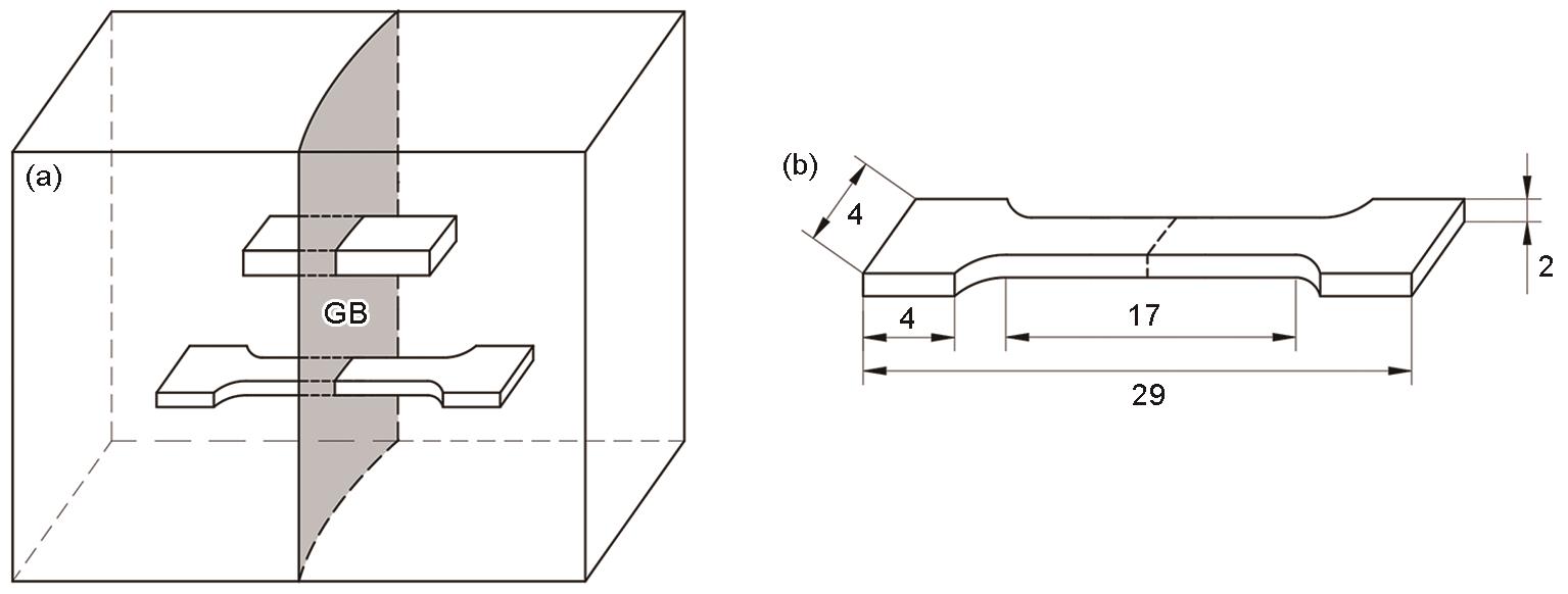 图2 板状拉伸样品和块状金相样品切取过程的示意图和拉伸样品的尺寸 |