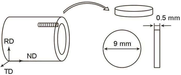 Specimen dimension / mm | ϕ9 × 0.5 |