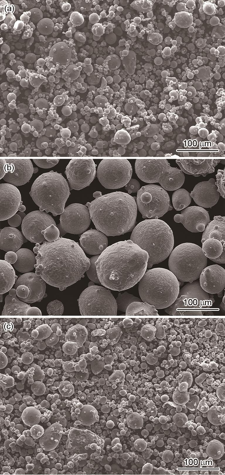 Fig.1 Powder morphology of 6061 (a), FeCoCrNiMn (b) and FeCoCrNiMn + 6061 (c) |