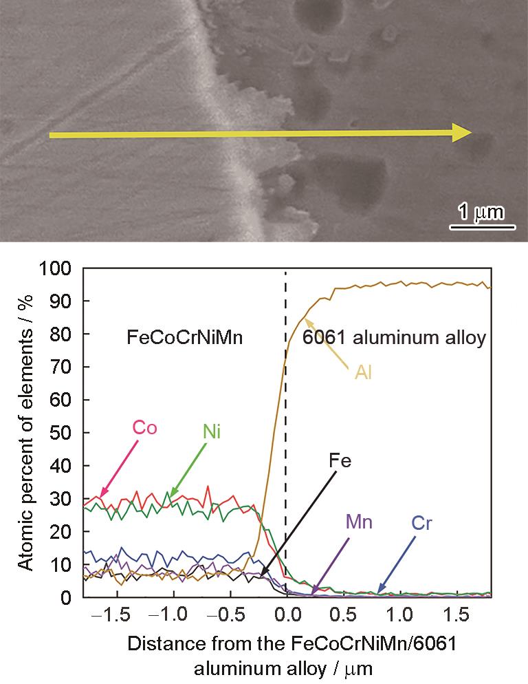 图7 FeCoCrNiMn/6061铝基复合材料的界面层EDS线扫描分析 |