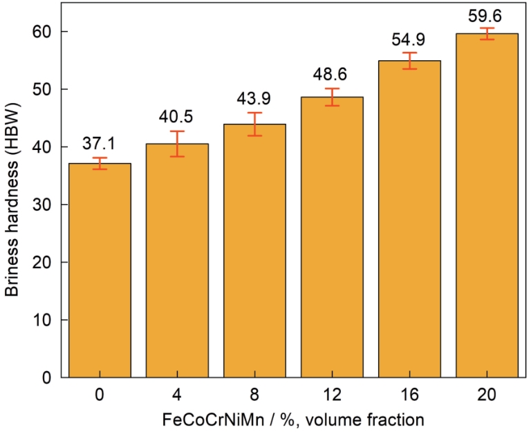 图8 FeCoCrNiMn/6061铝基复合材料的布氏硬度 |