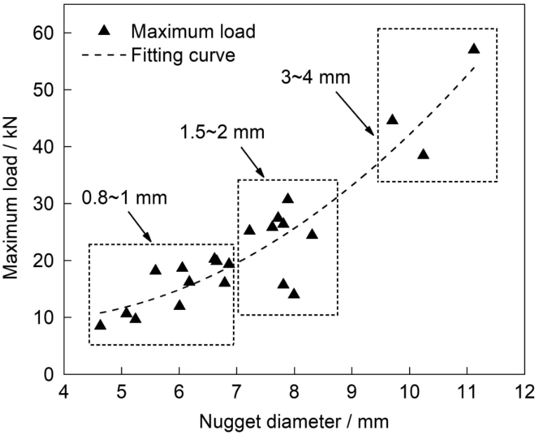 | 图9 最大载荷与熔核直径的关系 |