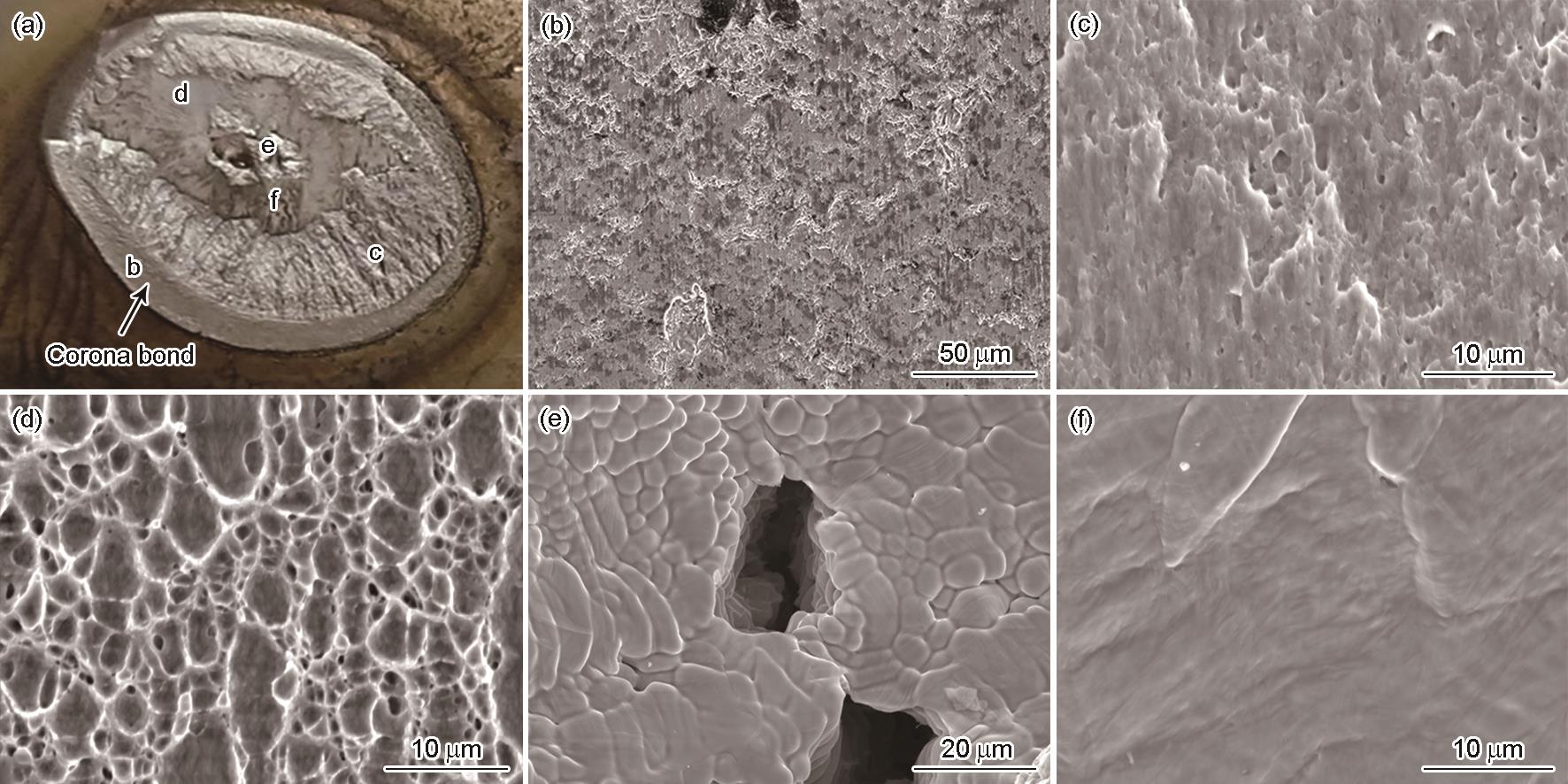 | Fig.10 Microstructure of the resistance spot welded joint spot inner fracture(a) fracture (b) b of fracture (c) c of fracture (d) d of fracture (e) e of fracture (f) f of fracture |