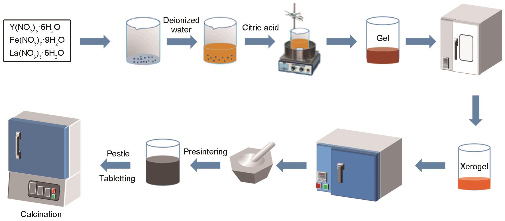 | Fig.1 Process of preparing Y1-x La x FeO3 by sol-gel method |