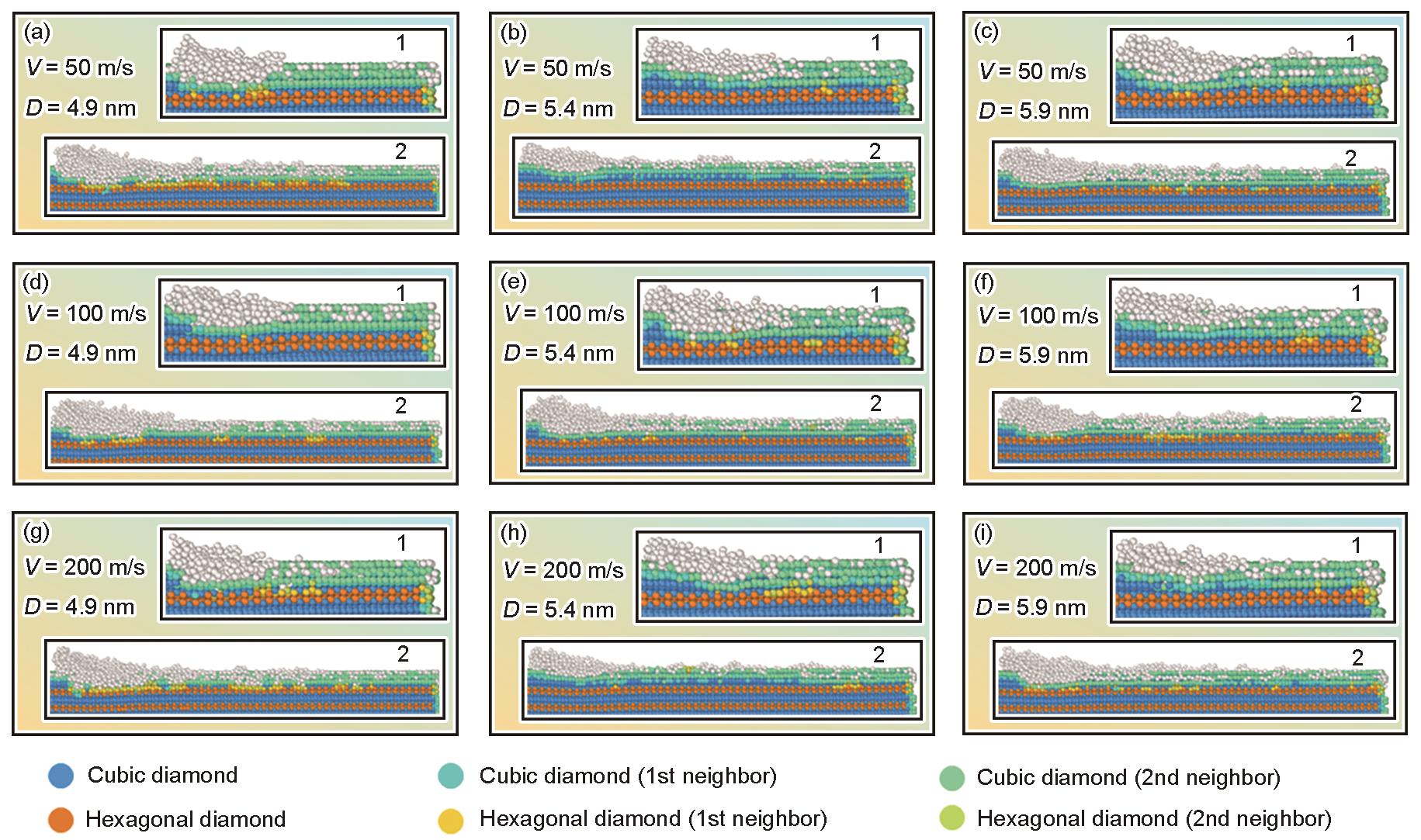 图5 不同磨削速度和磨粒尺寸条件下6H-SiC工件亚表面中的相变 |