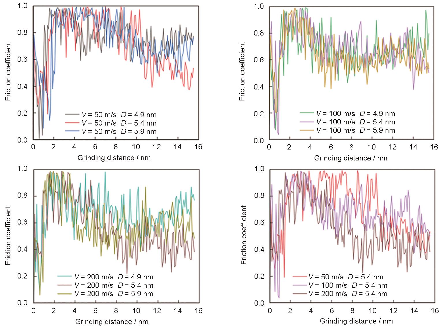 图12 不同磨削速度和磨粒尺寸条件下6H-SiC工件的摩擦系数 |