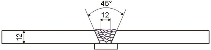 Schematic diagram of groove form and size of weld deposit metal (units: mm)