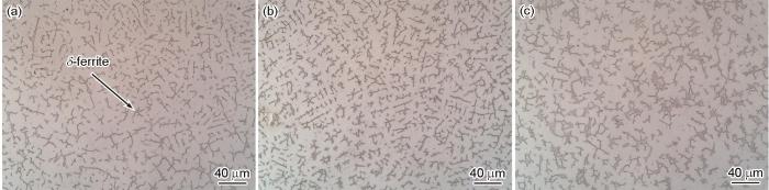 Microstructure of deposited metals with varying δ- ferrite contents (a) 7δ, (b) 8δ, (c) 10δ