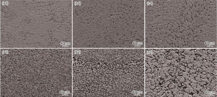 Surface corrosion morphology of weld metal with different δ-ferrite contents after 10 d (a1-c1) and 30 d (a2-c2) (a1, a2) 7δ, (b1, b2) 8δ, (c1, c2) 10δ