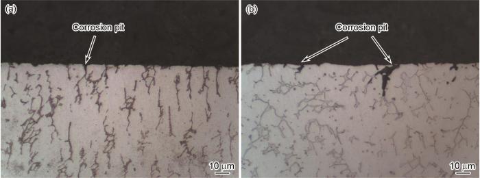(2) 在含有氧化性阳离子的高温浓硝酸环境中,由于δ-铁素体富含Cr元素,会与奥氏体形成“小阳极大阴极”腐蚀回路,再加之贫Ni,导致δ-铁素体比奥氏体基体更易腐蚀。