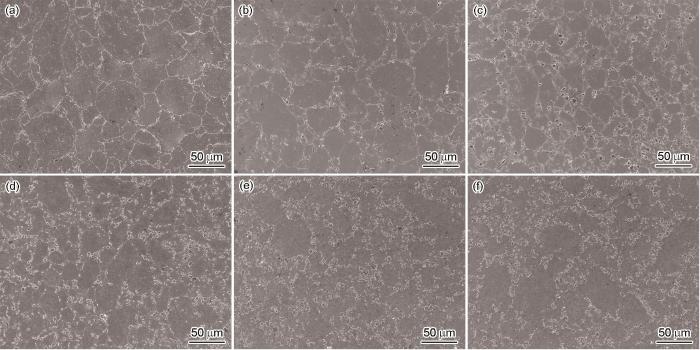用热压烧结制备7075-xTiB2 (x = 0%, 3%, 6%, 9%, 12%, 15%,质量分数)复合材料,研究了TiB2颗粒含量和固溶温度对其微观组织和力学性能的影响。结果表明:在600 ℃热压烧结的7075-6%TiB2复合材料其致密度可达98.17%。TiB2颗粒阻碍了α-Al的生长,热压态7075-6%TiB2复合材料的晶粒显著细化,平均晶粒尺寸由57.53 μm减小到38.12 μm。7075-6%TiB2复合材料中主要分布在晶界的TiB2颗粒,阻碍溶质扩散和降低扩散速度抑制了晶界处η(MgZn2)相、S(Al2CuMg)相的生长。细晶强化和弥散强化的共同作用使热压态7075-6%TiB2复合材料的屈服强度和抗拉强度分别达到(205 ± 5) MPa和(338 ± 6) MPa;随着固溶温度(460~520 ℃)的提高,热压态7075-6%TiB2复合材料的屈服强度和抗拉强度先提高后降低。在500 ℃固溶的复合材料内析出较多细小的强化相(η、S),显著的弥散强化使屈服强度、抗拉强度分别比固溶处理前提高了39.5%和25.4%。在500 ℃固溶的7075-6%TiB2复合材料,其力学性能比铝合金更好。